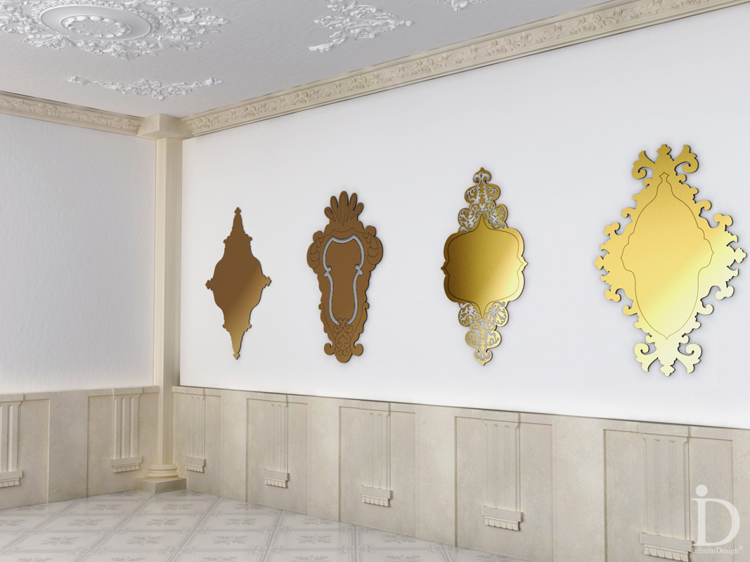 “Specchiere Rococò” è la nuova Linea di Specchiere progettate sotto l’influenza dello Stile Rococò, in Plexiglass a Specchio Argento e/o Oro, ideate – progettate – prodotte da InfinitoDesign, un prodotto tutto italiano, dalla progettazione alla produzione tutta Made in Italy.