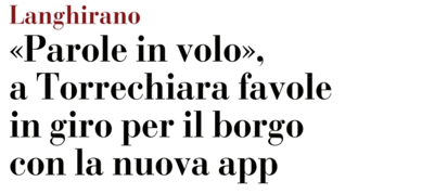 “Parole in volo”, a Torrechiara favole in giro per il borgo con la nuova appDi InfinitoDesign / 21 Maggio 2024 Gazzetta di Parma, 21 maggio 2024 “Parole in volo”, a Torrechiara favole in giro per il borgo con la nuova app Leggi l’articolo