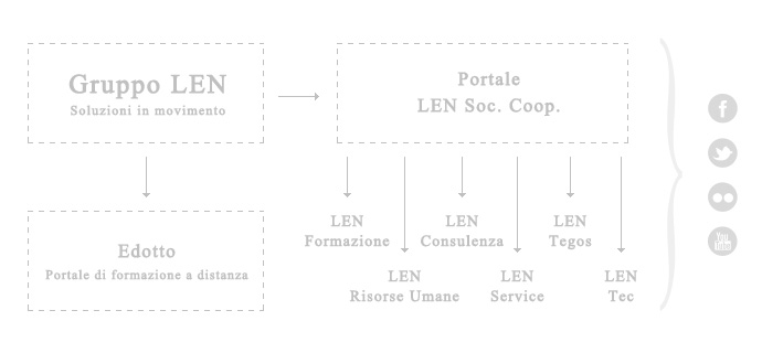 “Gruppo LEN” diventa quindi una pagina di presentazione e smistamento per gli utenti che hanno così un chiaro quadro d’insieme del Gruppo ed una facile lettura della pagina.